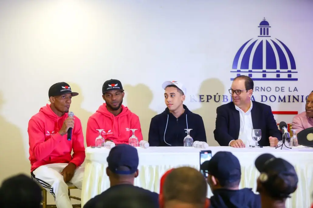El anuncio fue hecho durante el pesaje-rueda de prensa realizados en el salón James Rodríguez del Ministerio de Deportes y Recreación (MIDEREC), con la presencia del viceministro Franklin de la Mota y el comisionado de Boxeo Ramón Valdez, quienes acompañaron al presidente de la promotora Raymond Mota.