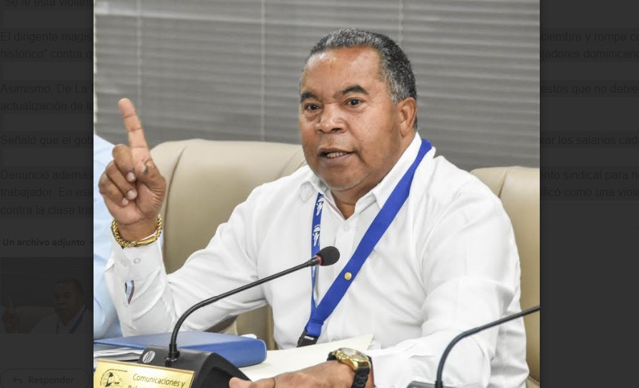 El dirigente magisterial hizo un llamado enérgico al Gobierno para que indexe los salarios en el mes de diciembre y rompa con lo que calificó como “un castigo histórico” contra quienes producen la riqueza nacional y garantice una Navidad digna para todos los trabajadores dominicanos.