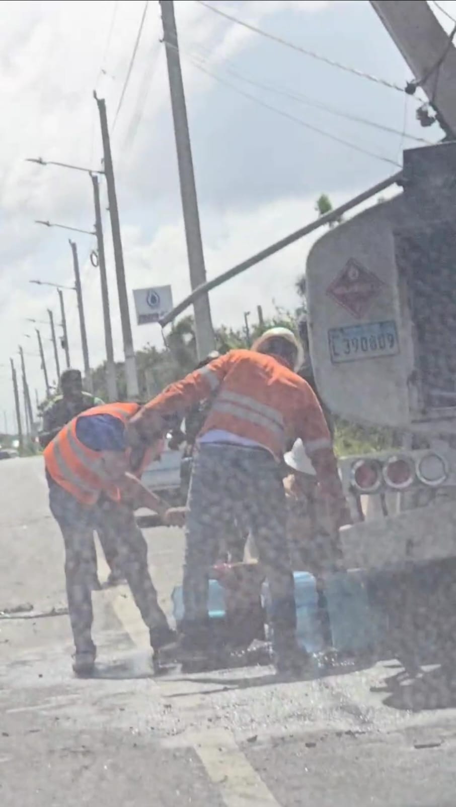 Santo Domingo Este.- Un fuerte congestionamiento vehicular se registra en la avenida Ecológica, en dirección oeste-este, tras el choque de un camión cargado de combustible contra un poste del tendido eléctrico.